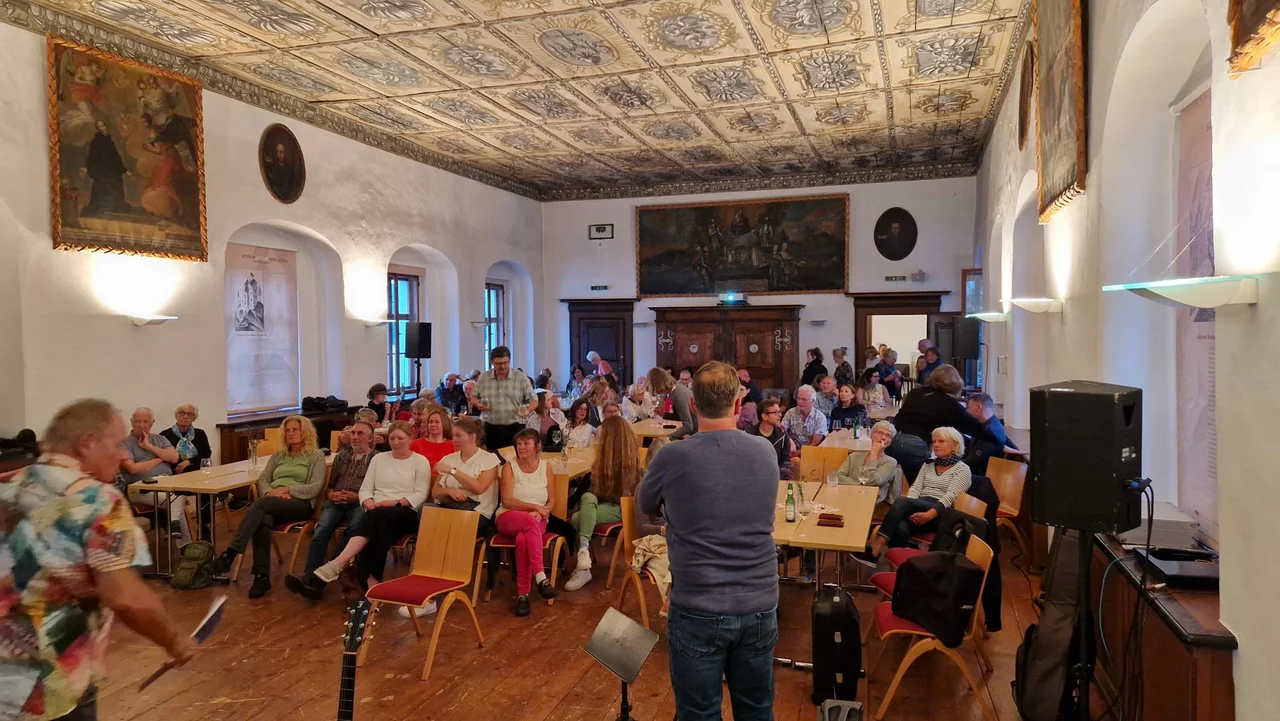 An 2 Donnerstagen im Juli gibt es in den schönen Traunkirchner Klosterräumen Musik, Buffet und Kino (Eintritt frei, Spenden gern gesehen)