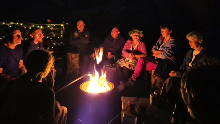 und Gästen bei uns ein großes Feuer und ein kleines Feuer in