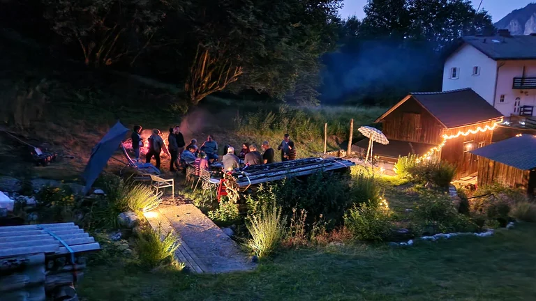 der Feuertonne. Dazu gibt es Suppe, Würstl und Kartoffeln sowie